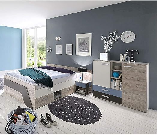 Exzellente formgebung trifft auf helle und freundliche farben. Die moderne wohnwand bietet stauraum und ist das optische highlight im wohnzimmer. Der elegante frontmix aus sandeiche nachbildung und touchwood nachbildung sowie die indirekte beleuchtung runden das gesamtbild ab. Die bettanlage in sandeiche nachbildung mit weißen absetzungen lässt ihr schlafzimmer in einem neuen licht erstrahlen.