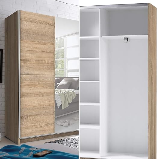 Stella Trading Fast Eleganter Kleiderschrank Garderobenschrank Mit Spiegeltur Viel Stauraum Vielseitiger Schwebeturenschrank In Sonoma Eiche Optik 125 X 195 X 38 Cm B H T Amazon De Kuche Haushalt from images-na.ssl-images-amazon.com