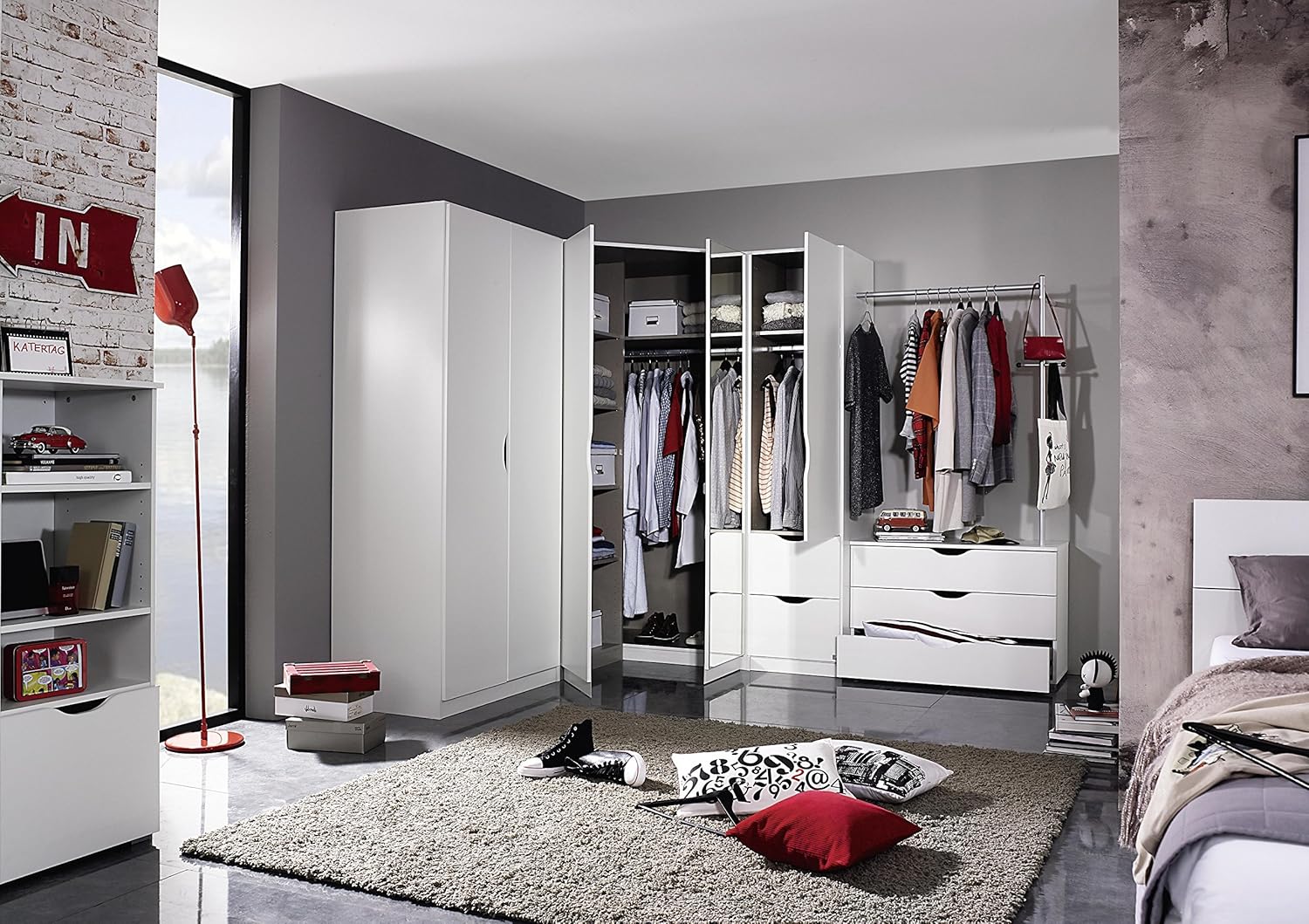 Rauch Mobel Alvara Eckschrank Kleiderschrank Schrank In Weiss Mit Spiegel 2 Turig Inklusive Zubehorpaket Basic 2 Kleiderstangen 5 Einlegeboden Bxhxt 117x197x104 Cm Amazon De Kuche Haushalt from m.media-amazon.com